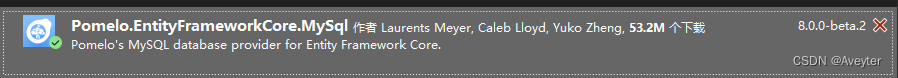 若是在NuGet中搜索不到8.0.0的包,大家也可以前往官网自行下载:NuGet Gallery | Pomelo.EntityFrameworkCore.MySql 8.0.0-beta.2