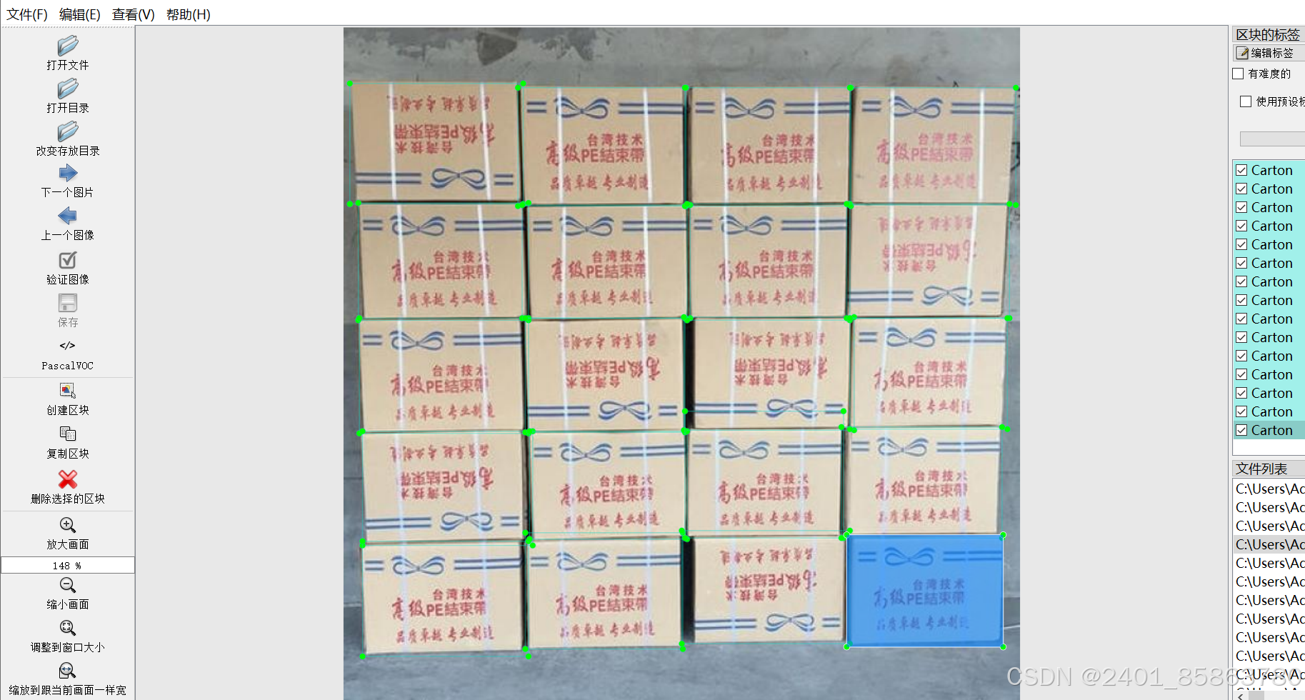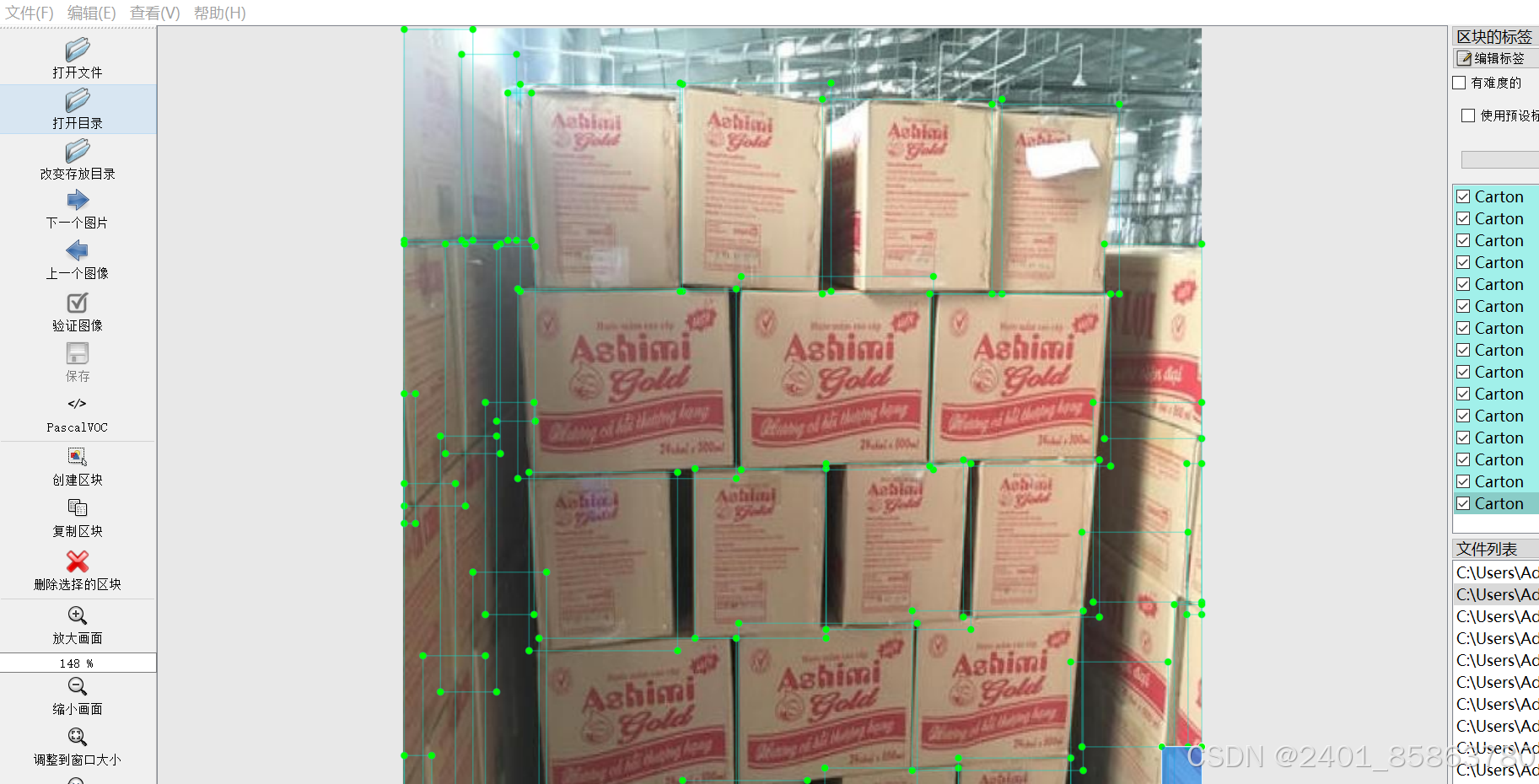 该数据集包含16915张用于方形硬纸盒检测的图像,每张图像都有对应的XML和TXT文件进行标注。标签种类为1种,即“Carton”,总共有340302个标注框。数据集进行了增强处理,增强图片占比约60%,适合用于训练和评估目标检测模型。