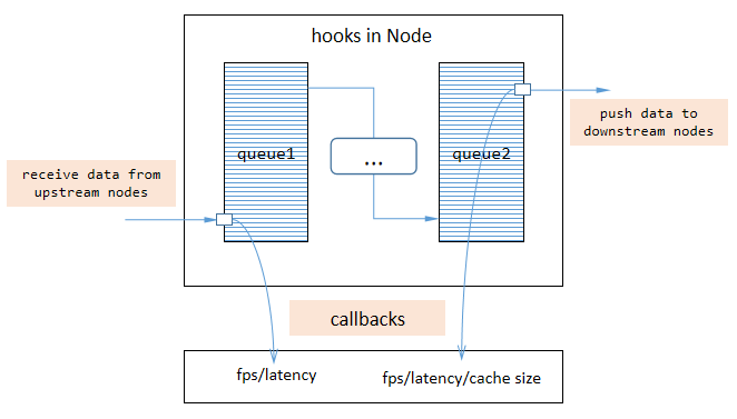 - 管道支持钩子(回调),你可以向管道注册回调以获取状态通知(参见第1项特点),例如实时获取某个连接点的fps。