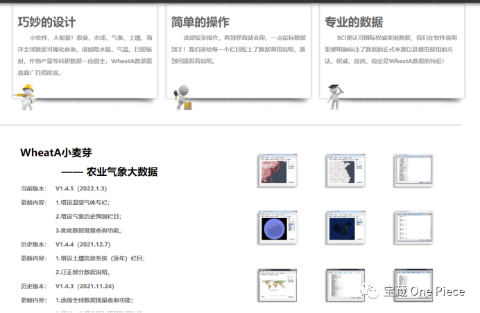 该软件通过卫星地图的样式来存储各地的生态数据,用户想获取某一地点的历年/月/周等数据,只需要用光标点击,再通过Excel导出即可,非常简易。应该说WheatA县级板块的气象数据要素全面,连续性好,质量高,基本不存在数据断点、丢失的情况,再加上40年的跨度也不算太短。系统覆盖全球各国六十余种农产品的生产贸易数据,逐年/逐月/逐日/逐时的气象数据,土壤海洋等科研数据以及近五年全国期现货报价数据。注意,