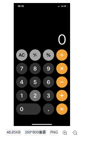 苹果计算器界面简洁直观,布局规整。其按键设计风格统一,数字与运算符按钮排列有序,显示区域清晰明了。我们的复刻完全沿用其外观布局,包括按钮的大小、位置、颜色以及字体风格等,同时运用切图控件来呈现类似的视觉效果,直接手机截屏使用。