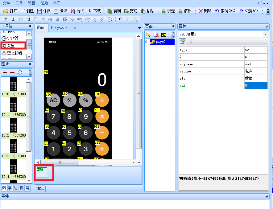 变量控件是存储临时数据的核心组件,类似于编程中的i、j等中间变量,这里是va0。