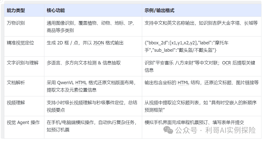定位:Qwen2.5-VL 是 Qwen 模型家族的旗舰视觉语言模型,面向高端文档解析、智能问答、视觉 Agent 等场景。