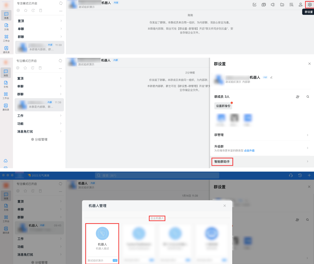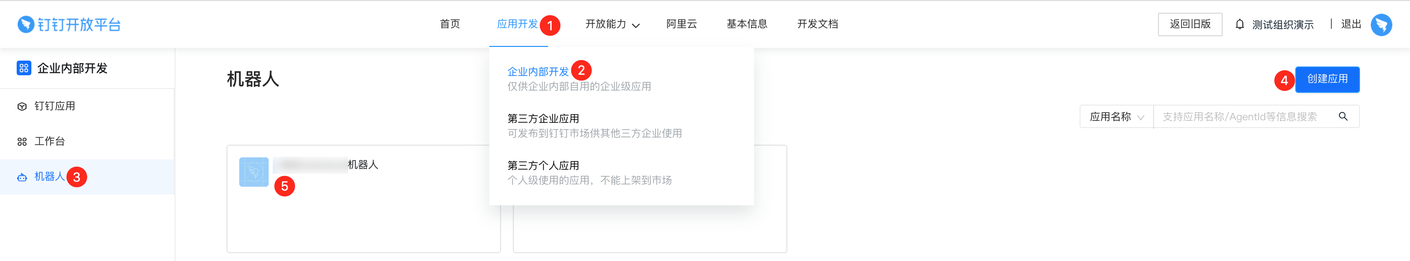 1. 创建企业内部机器人应用