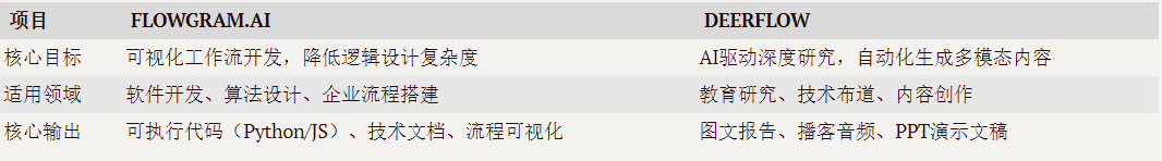 DeerFlow : 知识产品化工具 ,将信息转化为易传播的多模态内容,解决“怎么讲”问题; 二者构成从技术实现到知识交付的完整闭环,代表字节在AIGC领域“工具链+生态”的战略布局。
