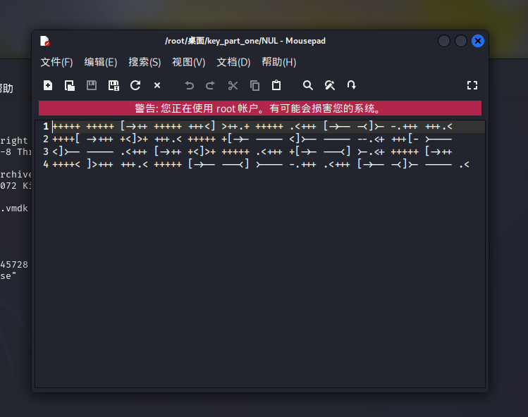 图片用binwalk分析,发现一个压缩包用foremost分离发现压缩包是伪加密,修复后打开是vmdk文件用kali中的7z解压vmdk文件,发现两个特殊文件夹打开第一个发现是Brainfuck编码解码得到第一部分flag打开第二个文件夹,发现是ook编码解码得第二部分flag。