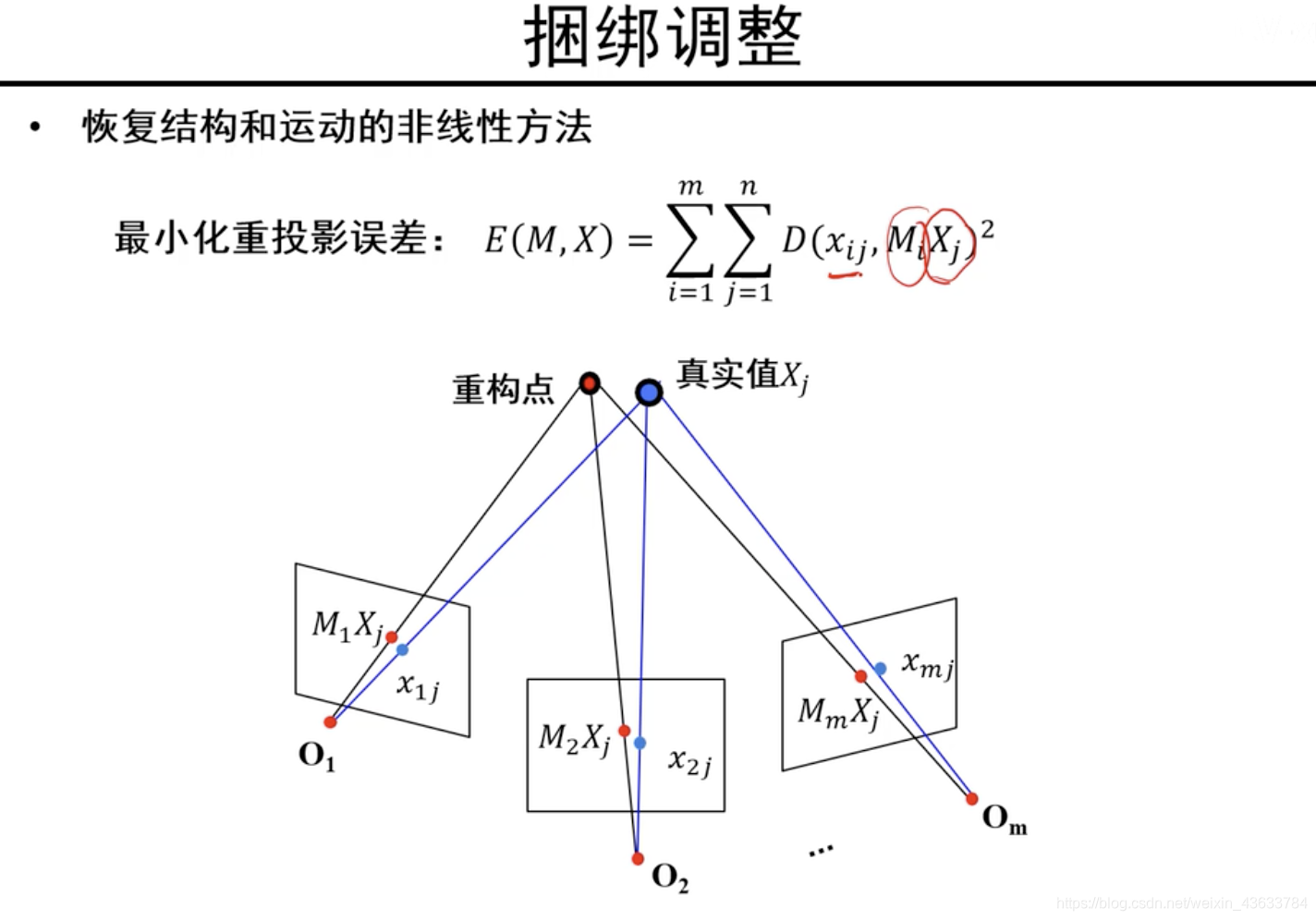 投影到摄像机上的点要使所有点的累加求和的平方越小越好,投影点和观测点之间的距离越小越好。如果缺少数据的话直接不加进去就可以。