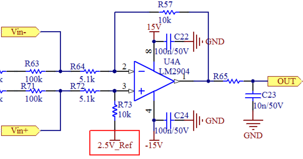 这里公式的成立,保证R64=R72,R73=R57,那么最终得到偏移公式是在原来基础上加个电压偏移量2.5V_Ref: