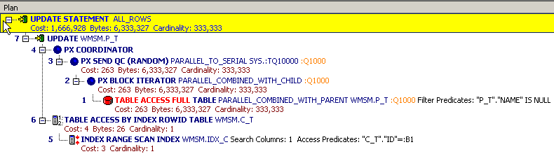 update /*+parallel(p_t,4)*/ p_t set name=(select /*+parallel(c_t,4)*/ name from c_t where p_t.id=c_t.id) where p_t.name is null;