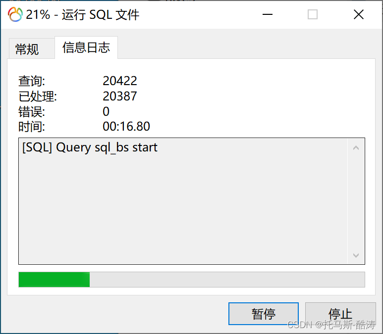 今日想将本机的mysql(8.0)中的数据库文件导出到远程服务器中的mysql(5.6)中,刚开始用source 一直报一大串ERROR,由于数据量比较大,那就直接用图形化工具导吧,连接上远程数据库,建好库,然后运行SQL文件,依旧是unsuccess,如下: