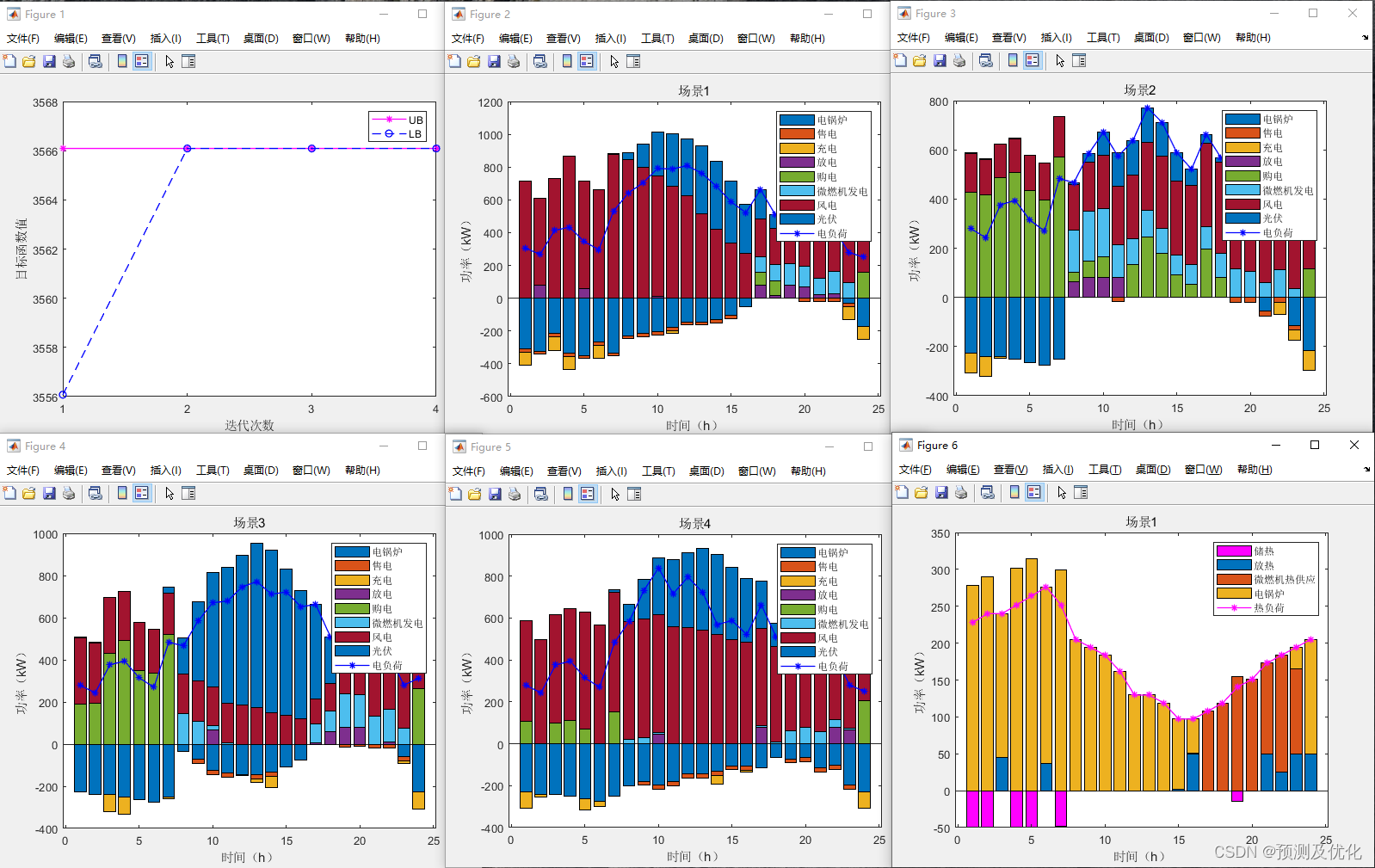 第二阶段目标函数:分别是电网购电成本、发电机运行成本、蓄电池老化成本(或者运维)、弃风和弃光成本。