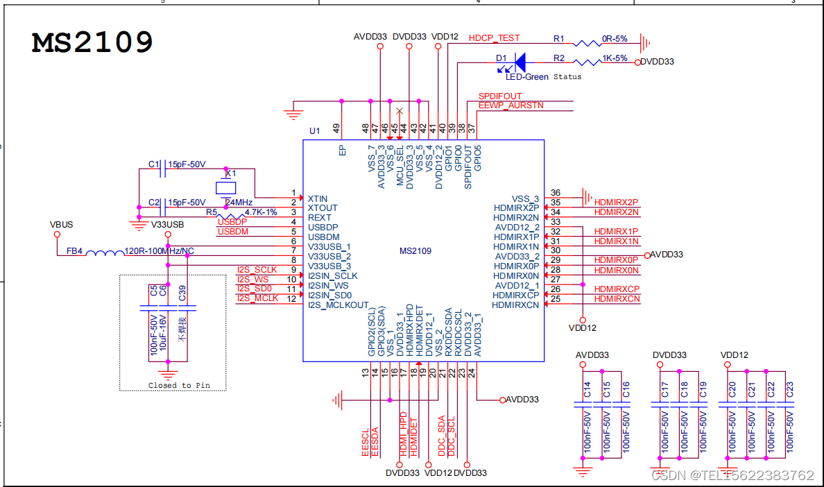 下面是MS2109的DEMO办原理图 详情如图所示: