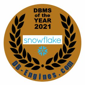 Snowflake在2021年DB-Engines排名中获得比其他383个被监测数据库系统更受欢迎的成绩。 因此,DB-Engines 官方宣布Snowflake为2021年的年度DBMS。