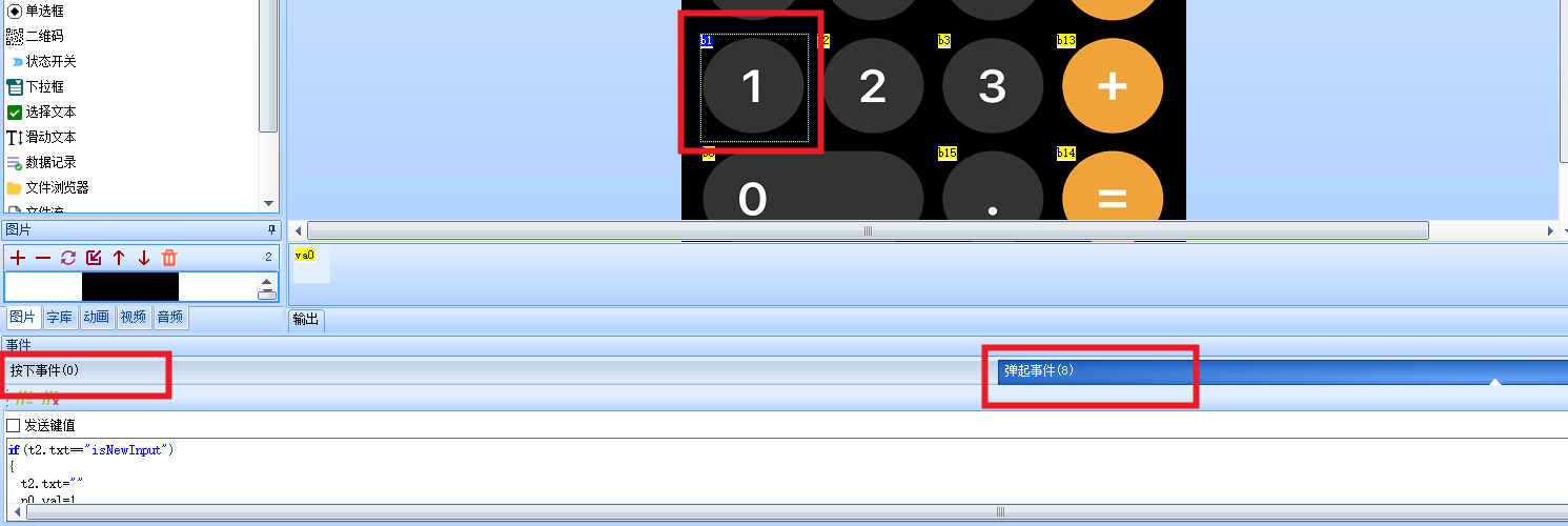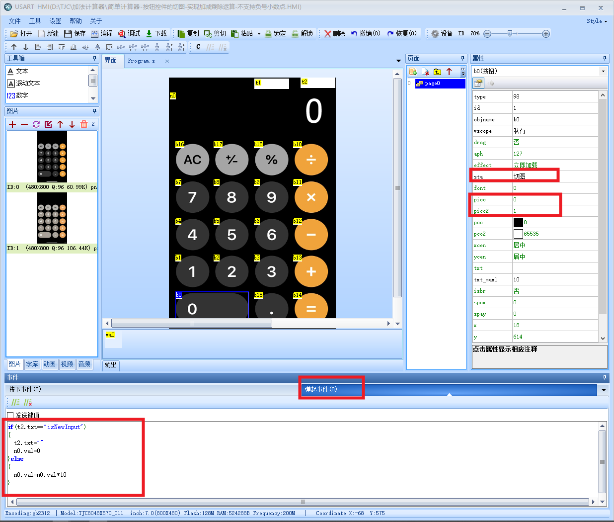 b0(按钮)为例,sta设置成切图,picc设置为编号是0的照片,picc2设置为编号是1的照片。