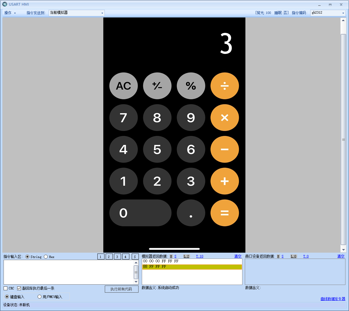 本文基于上一篇文章改进,修改前,仅仅支持两个单位数字加法运算,修改后,支持加减乘除运算-不支持负号,小数点和百分号。我们将借助陶晶驰串口屏的按钮控件的按下事件,以1:1复刻苹果手机计算器为目标,初步了解陶晶驰串口屏的代码编写。