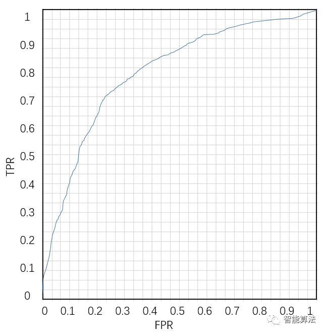 ROC的全称是Receiver Operating Characteristic Curve,中文名字叫“受试者工作特征曲线”,对于ROC来说,横坐标就是FPR,而纵坐标就是TPR,因此可以想见,当TPR越大,而FPR越小时,说明分类结果是较好的。如下图: