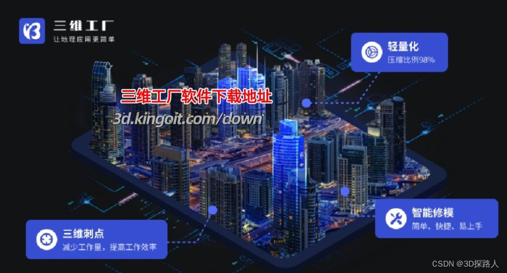 三维工厂K3DMaker是一款三维模型浏览、分析、轻量化、顶层合并构建、几何校正、格式转换、调色裁切等功能专业处理软件。可以进行三维模型的网格简化、纹理压缩、层级优化等操作,从而实现三维模型轻量化。轻量化压缩比大,模型轻量化效率高,自动化处理能力高;采用多种算法对三维模型进行几何精纠正处理,精度高,处理速度快,超大模型支持;优秀数据处理和转换工具,支持将OSGB格式三维模型转换为3DTiles等格