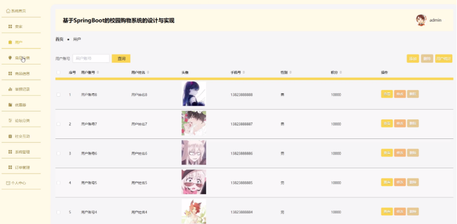 校园购物系统的开发,不仅能够满足学生及教职工便捷、安全、多样化的购物需求,打破传统校园商店的物理限制,提升交易效率与服务质量,还能够为商家提供一个展示商品、推广品牌的平台,拓宽销售渠道,降低运营成本。在基于SpringBoot的校园购物系统的功能模块设计中,通常会根据业务需求划分为多个模块,以实现系统的不同功能,每个模块都相互独立又相互关联,共同构成了一个完整的系统,通过精心规划的功能模块设计,能