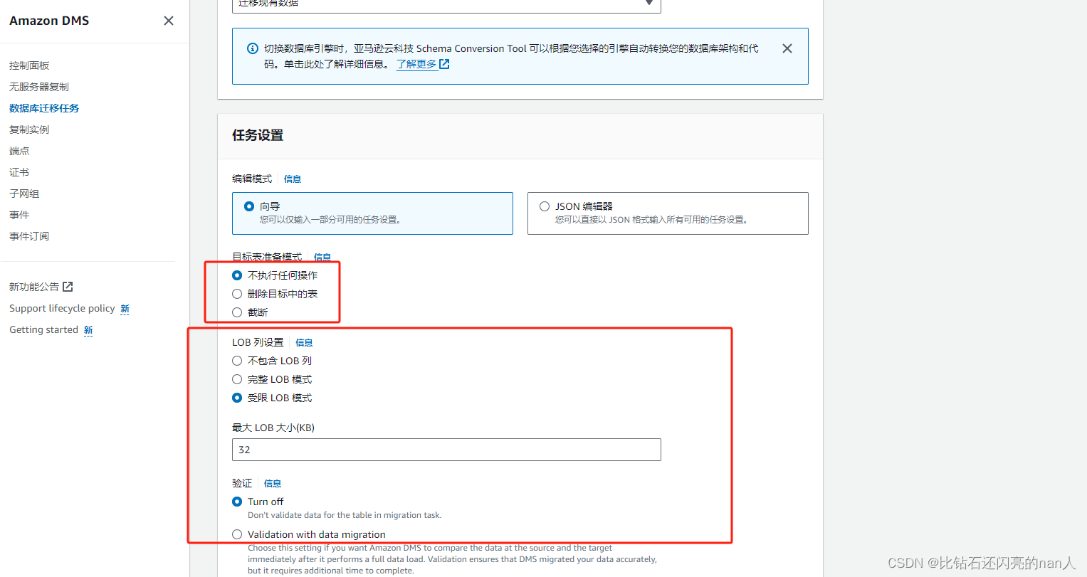 迁移类型2、3都需要修改RDS的参数binlog_checksum NONE、binlog_format ROW 重启RDS才能生效,其他DMS配置跟上面一样。