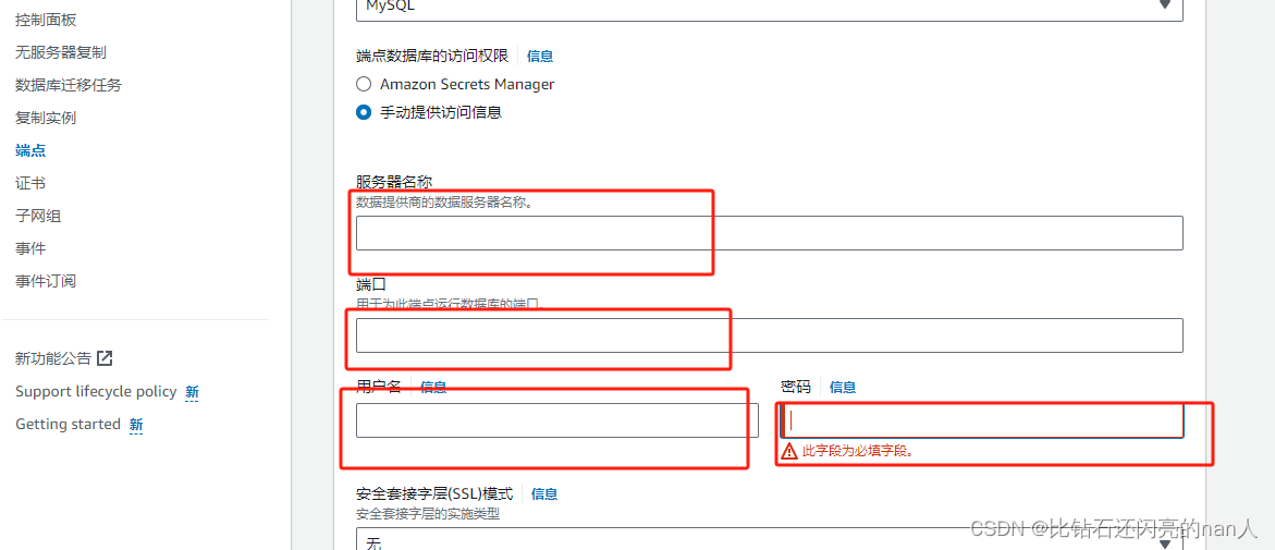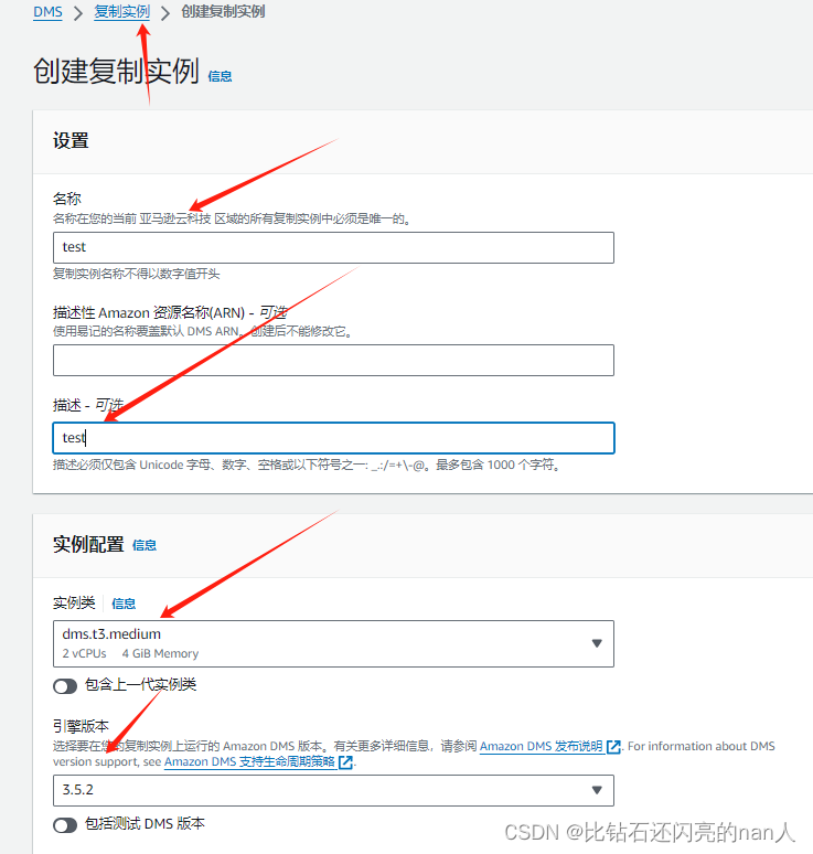 创建目标端点,自己选择引擎类型,服务器名称写公网DNS或者内网DNS(复制实例和服务器在同一子网的话),端口、数据库账户、密码,同理去测试连接一下,成功就可以开始做DMS了。