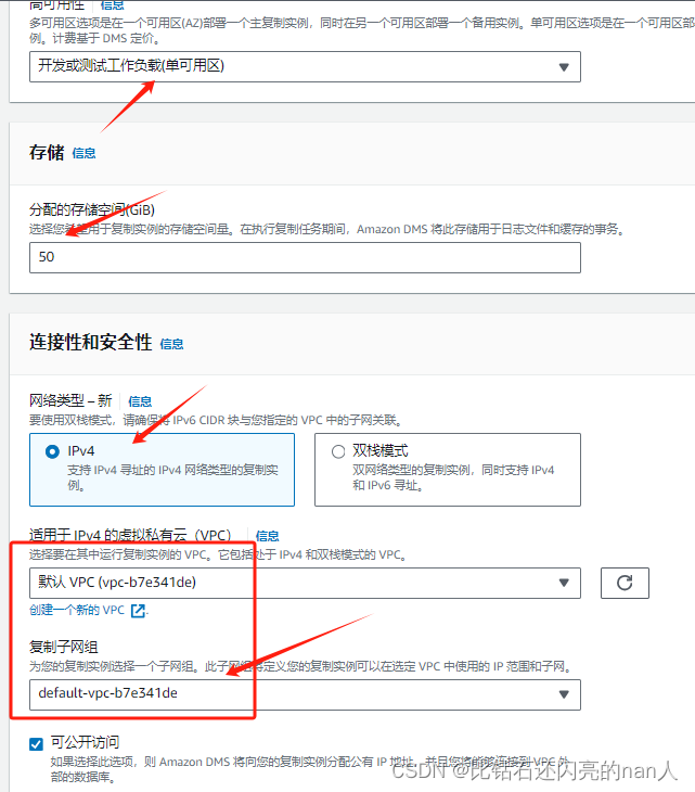 子网组需要提前去创建,VPC 要和RDS在同一网段,子网组要覆盖不同可用区的子网。
