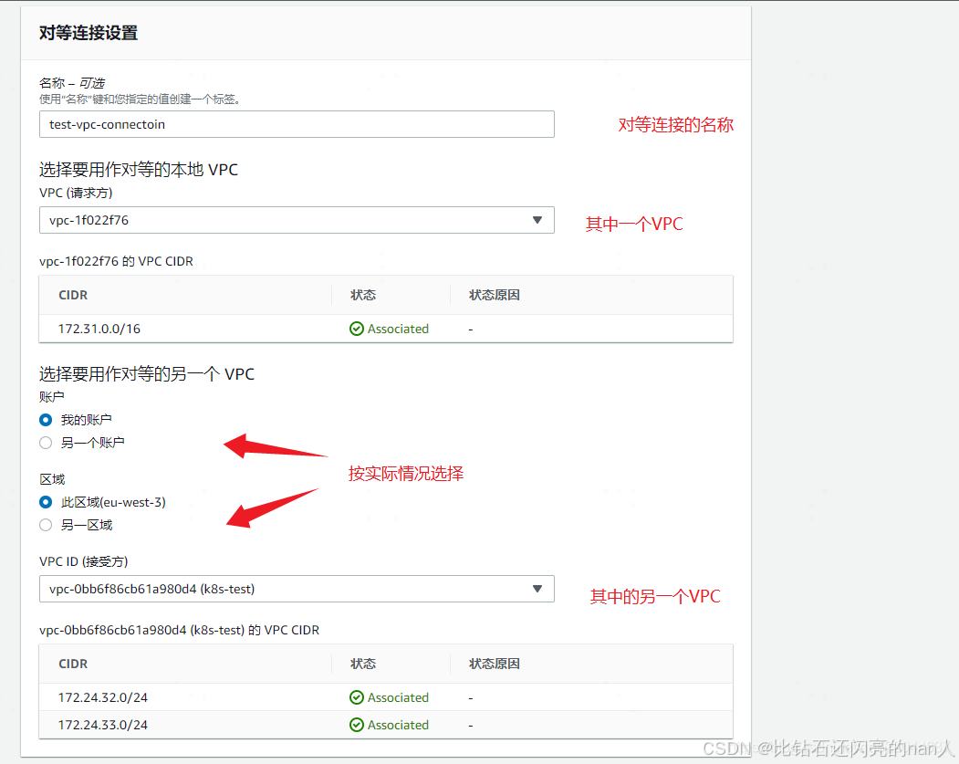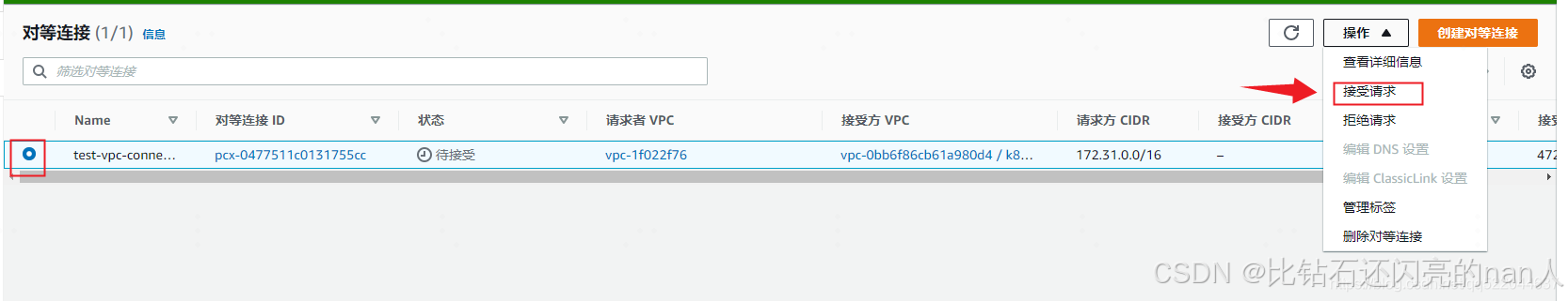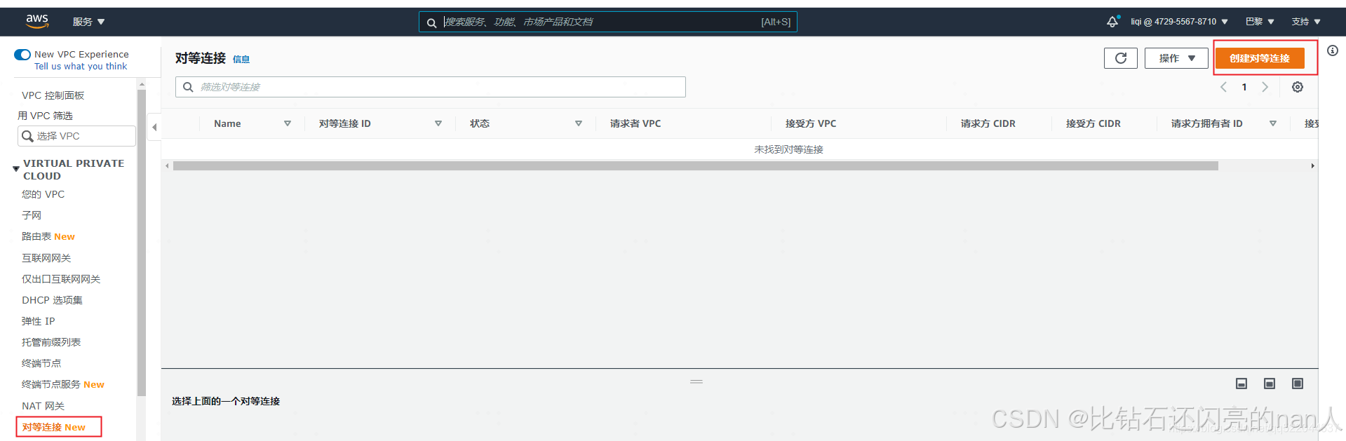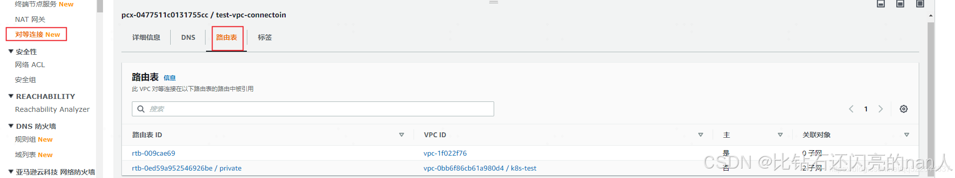 VPC 对等连接是两个 VPC 之间的网络连接,您可通过此连接,可以使用私有 IPv4 地址或 IPv6 地址在两个 VPC 之间路由流量。这两个 VPC 中的实例可以彼此通信,就像它们在同一网络中一样。您可以在自己的 VPC 之间、自己的 VPC 与另一个 AWS 账户中的 VPC 或与其他 AWS 区域中的 VPC 之间创建 VPC 对等连接。