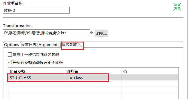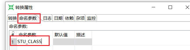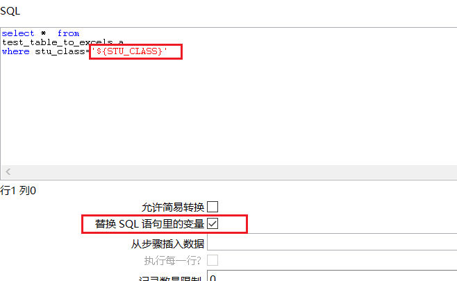 其中STU_CLASS是变量名,stu_class是第一个转换sql中的列名。