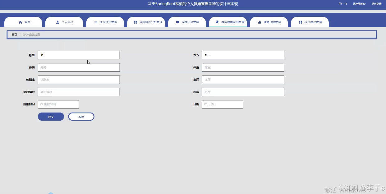 springboot+vue框架的个人健康管理系统的设计与实现【程序+论文+开题】计算机毕业设计