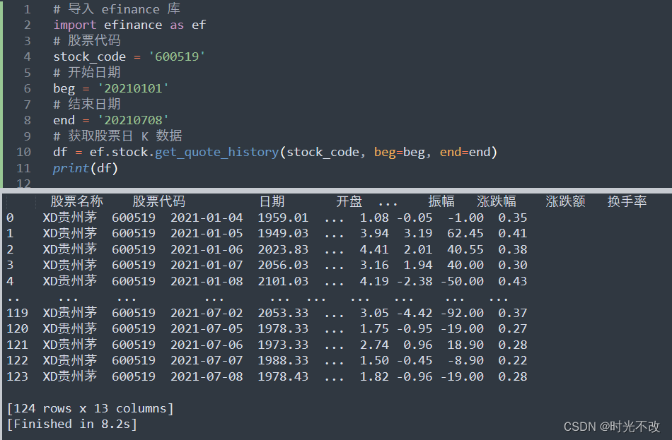 在使用一些别人封装好的库的时候,调用函数返回的结果便是DataFrame,这时如果要对内部数据做一些加工处理的话会很不方便。我们要需要将DataFrame还原成列表的形式来处理。
