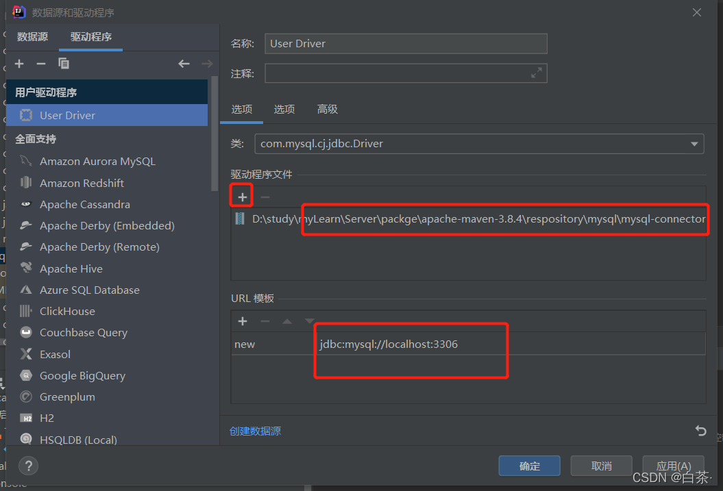 添加一个自定义驱动,要注意驱动的版本和idea的版本是否匹配,再次重复链接步骤