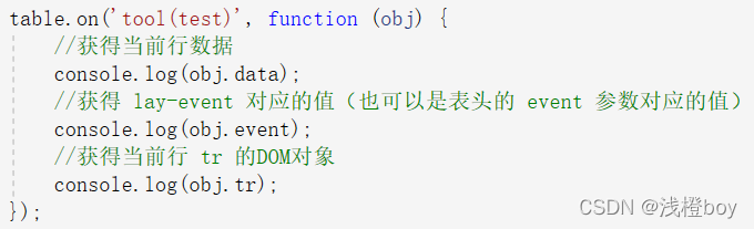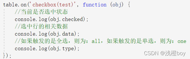 该监听功能有,监听头部工具栏事件,监听复选框选择,监听单元格编辑,监听行单双击事件,监听行中工具条点击事件和监听排序切换,下面将一一介绍。