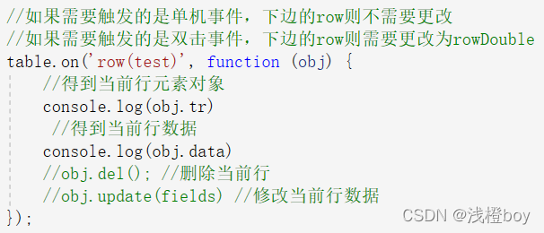 当某个行被单击或双击时返回相关数据,使用方法如下