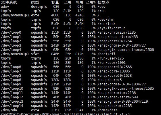 前面是硬盘的名字,后面是挂载的路径