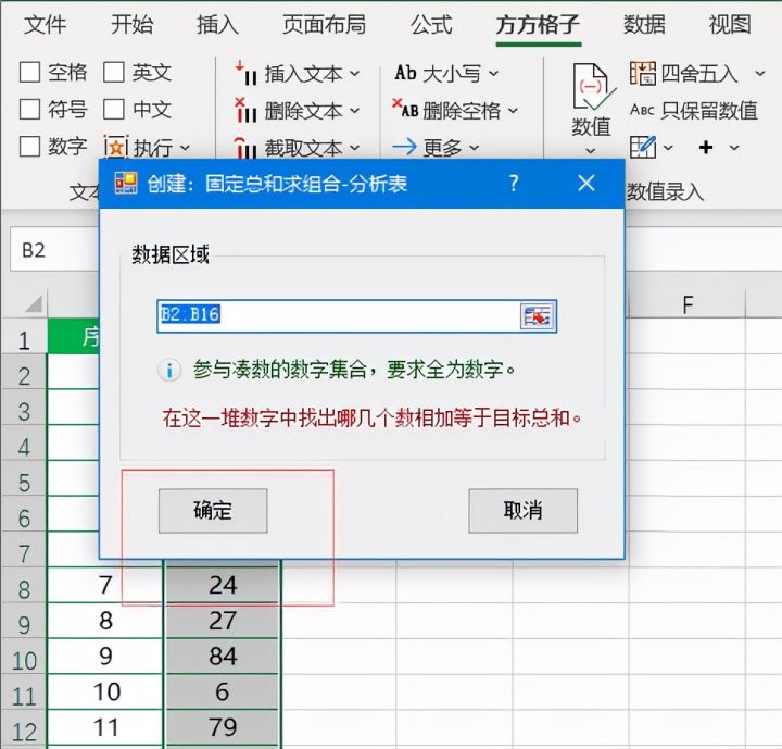 如下图B列为一些数值,想在想要从中去几个数字使其相加之和为150.选中B列所有数据单元格点击下图选项(Excel插件,百度即可了解详细的下载安装方法,本文这里不作详细叙述)点击【统计与分析】选择【凑数】点击【确定】在新建的工作表C2单元格输入150然后点击【开始分析】即可完成完成效果如下图...