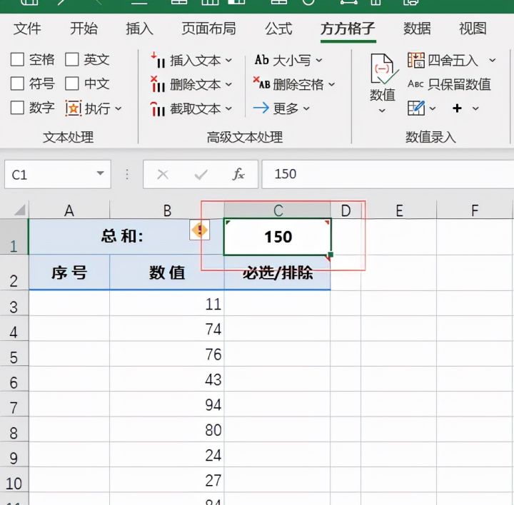 如下图B列为一些数值,想在想要从中去几个数字使其相加之和为150.