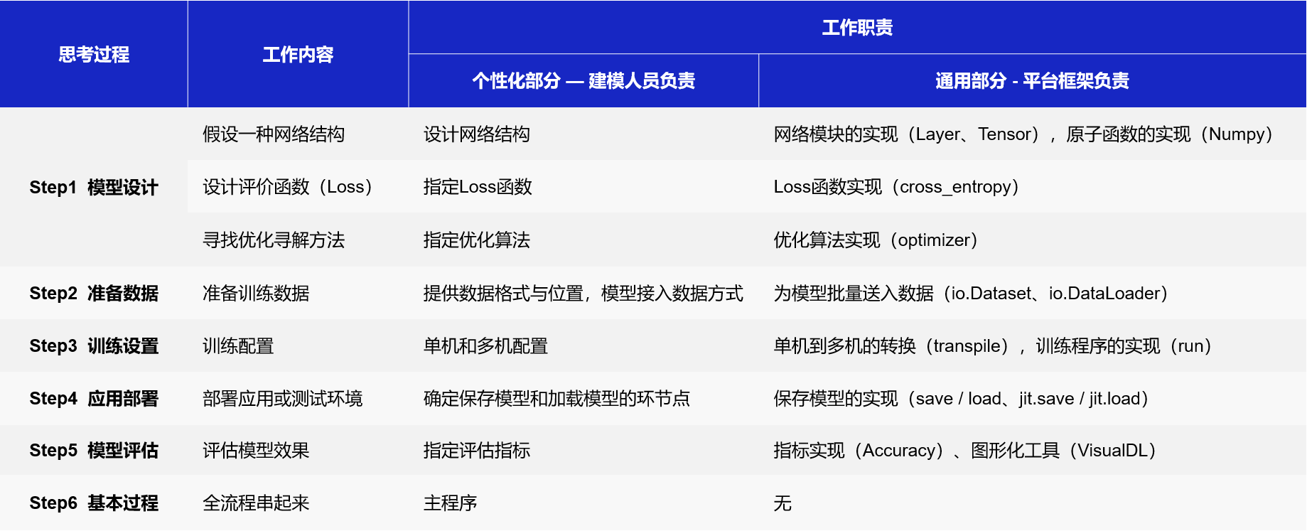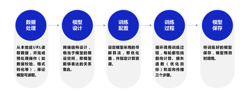 当读者使用飞桨框架编写多个深度学习模型后,会发现程序呈现出“八股文”的形态。即不同的程序员、使用不同模型、解决不同任务的时候,他们编写的建模程序是极其相似的。虽然这些设计在某些“极客”的眼里缺乏精彩,但从实用性的角度,我们更期望建模者聚焦需要解决的任务,而不是将精力投入在框架的学习上。因此使用飞桨编写模型是有标准的套路设计的,只要通过一个示例程序掌握使用飞桨的方法,编写不同任务的多种建模程序将变得十分容易。