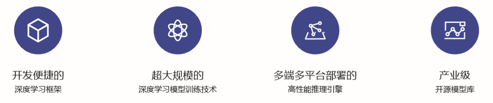 - 超大规模的深度学习模型训练技术:飞桨突破了超大规模深度学习模型训练技术,领先其它框架实现了千亿稀疏特征、万亿参数、数百节点并行训练的能力,解决了超大规模深度学习模型的在线学习和部署难题。此外,飞桨还覆盖支持包括模型并行、流水线并行在内的广泛并行模式和加速策略,率先推出业内首个通用异构参数服务器架构、4D混合并行策略和自适应大规模分布式训练技术,引领大规模分布式训练技术的发展趋势。