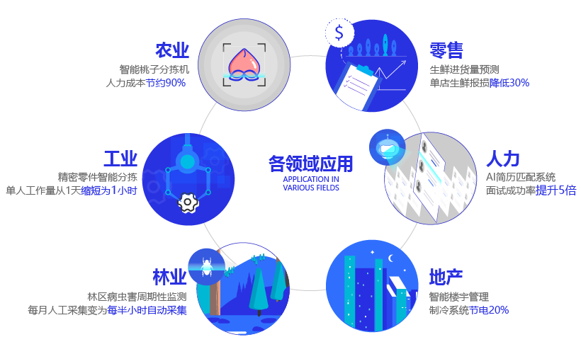 目前,飞桨已凝聚477万开发者,基于飞桨开源深度学习平台创建56万个模型,服务了18万家企事业单位。飞桨助力开发者快速实现AI想法,创新AI应用,作为基础平台支撑越来越多行业实现产业智能化升级,并已广泛应用于智慧城市、智能制造、智慧金融、泛交通、泛互联网、智慧农业等领域,如 图1 所示。