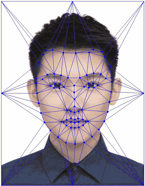 2、基于81个面部特征点 + 图像边界的8个点 , 共拿到每张图片的 89个点
