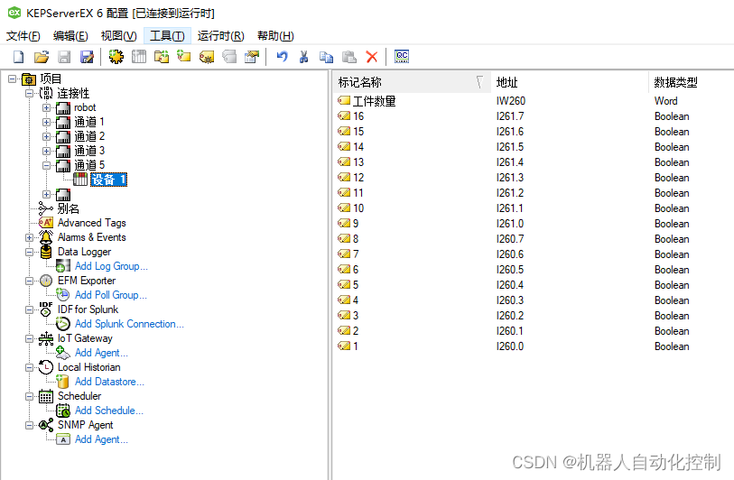 kepware采集PLC的数据“IW260”