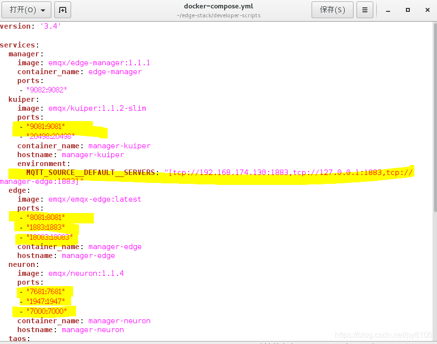 cd edge-stack/develpoer-scripts && gedit docker-compose.yml