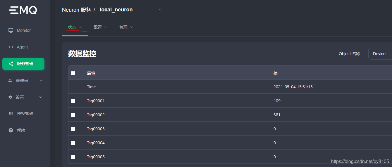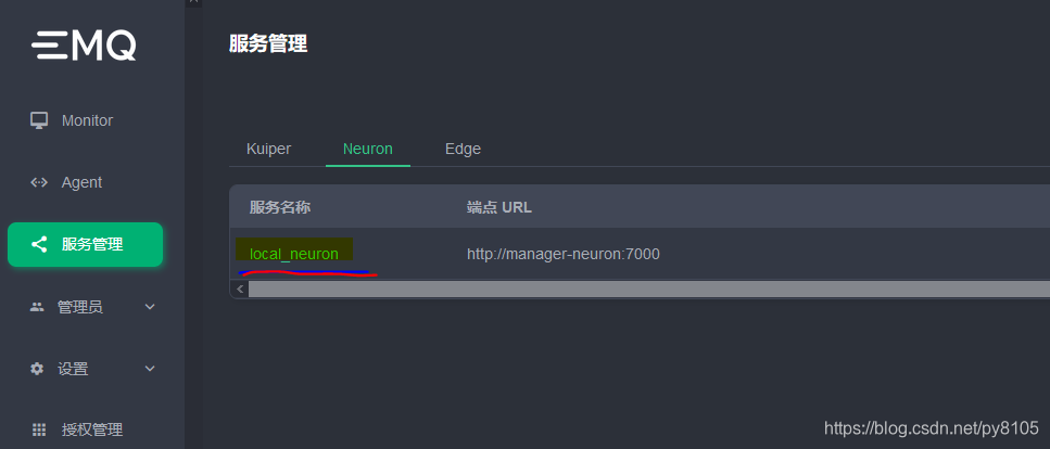 2)登录进入后,需配置neuron,实现数据采集,进入服务管理/Neuron栏目,点击列表的服务名称进入neuron配置界面