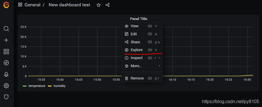 9)可以从panel Title下拉框菜单转入Explore页面查看结果,整个业务数据链OK。