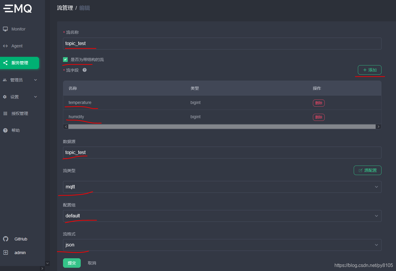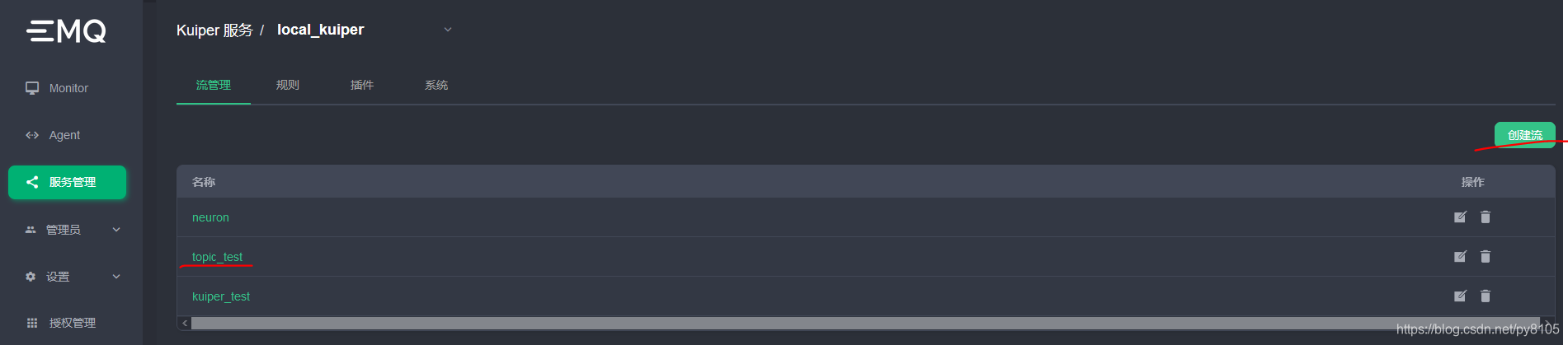 6)在EMQX Manager管理界面,配置kuiper,完成流配置、规则配置