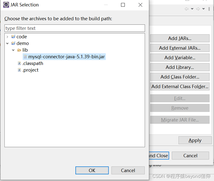 第五步、出现以下页面,点击【Apply and Close】,此时成功导入jar包