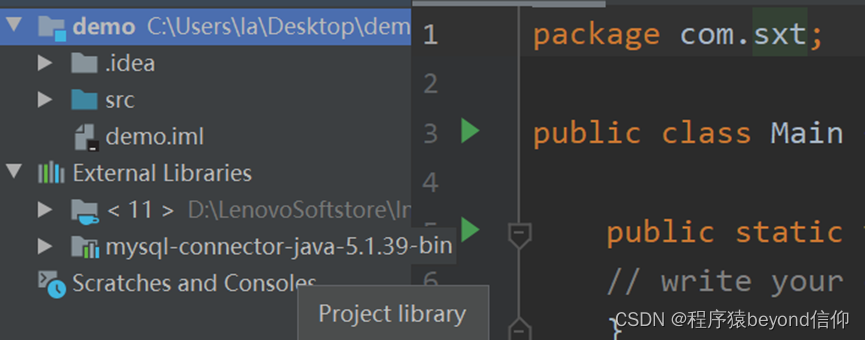 如图所示:demo项目lib文件夹中有jar包,Referenced Libraries(存放第三方的包)中也有了jar包