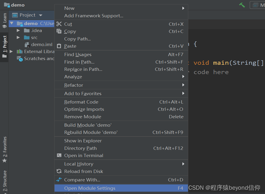 第一步、右键点击项目,选择【Open Module Settings】