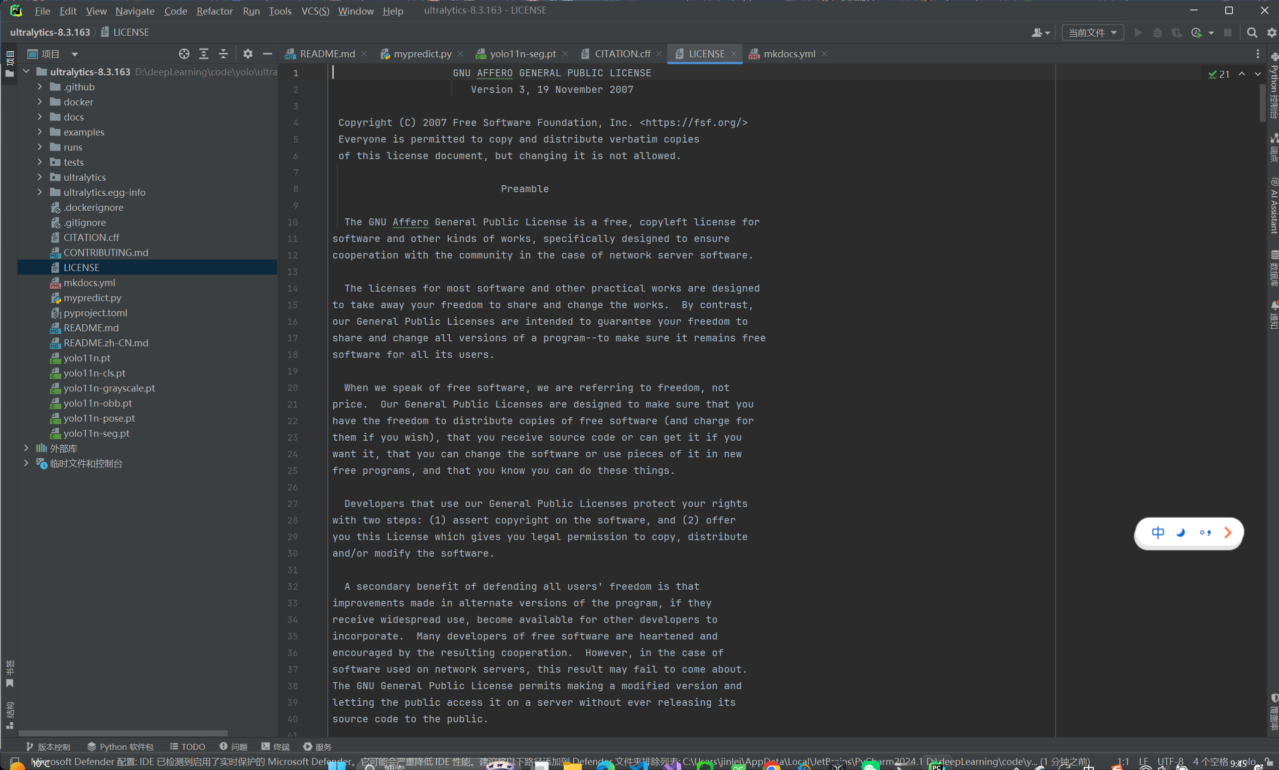 安装YOLO源码,我们需要下载的项目是ultralytics源代码。