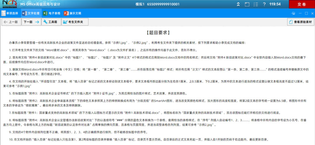 4、题型与分值:总分100分,包含选择题(20分)+ 操作题(80分)。
