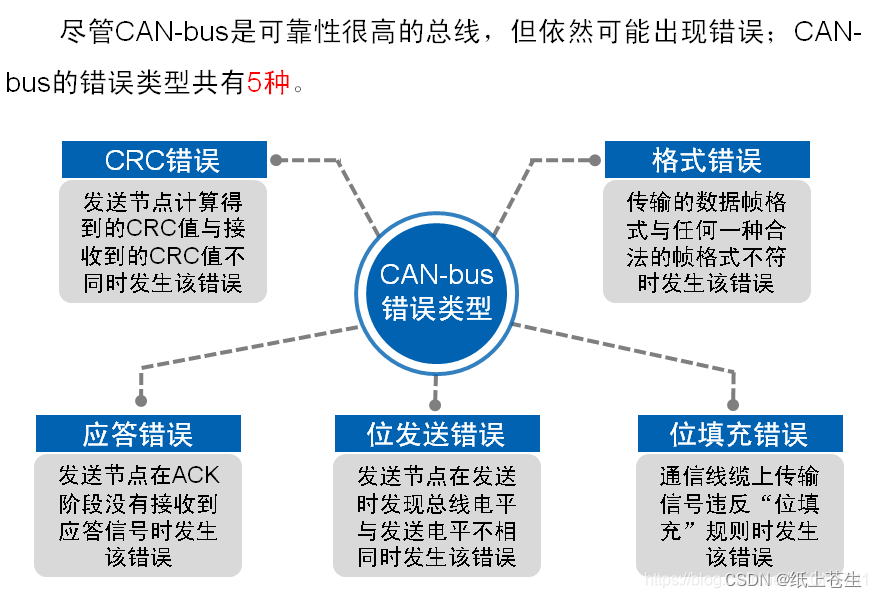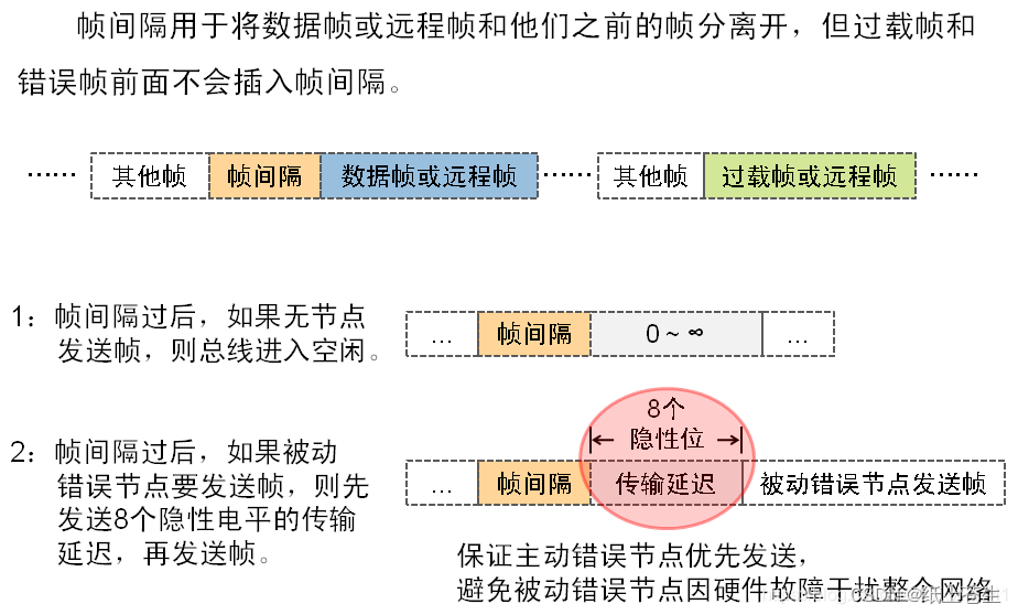 - 错误检测:包括位错误、填充错误、CRC错误、确认错误和格式错误。